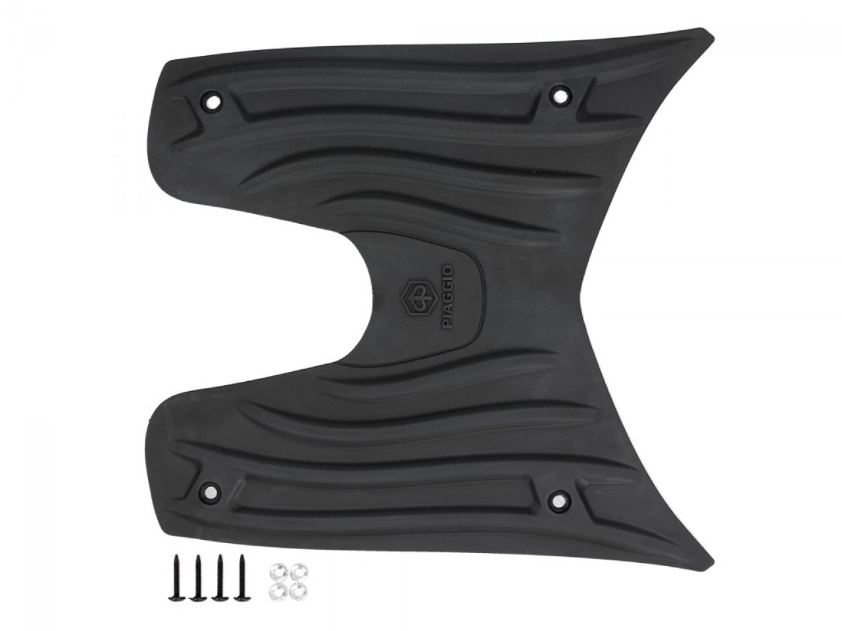 Antideslizante, reproduce la forma del reposapiés del vehículo, con el logotipo en relieve.