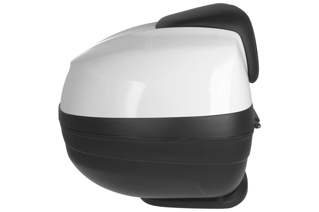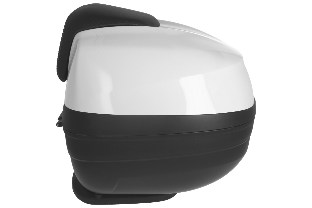 Top case con sistema de montaje rápido. Ofrece espacio para un casco modular. Top case pintado en el color del vehículo, con cojín trasero de confort para el pasajero, en el mismo material y acabado del asiento.