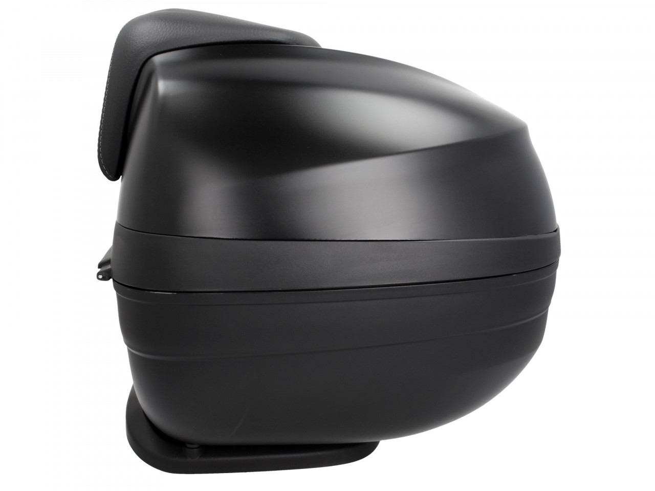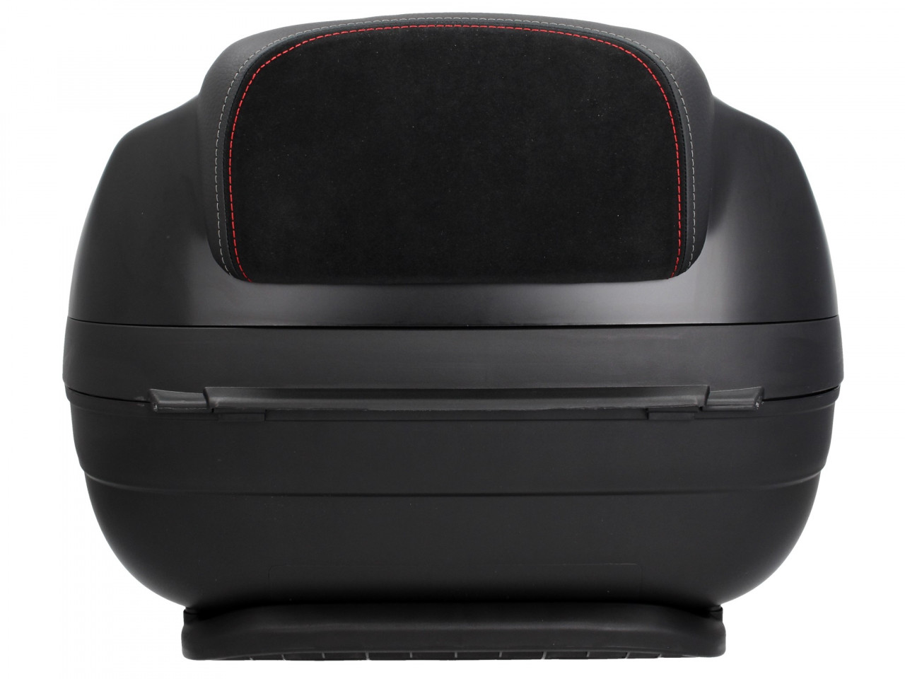 Top case con sistema de montaje rápido. Ofrece espacio para un casco modular. Top case pintado en el color del vehículo, con cojín trasero de confort para el pasajero, en el mismo material y acabado del asiento.