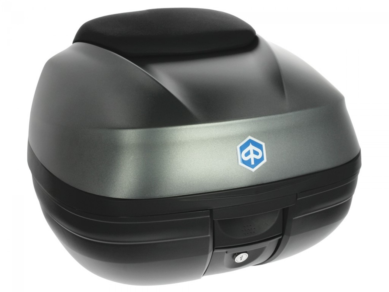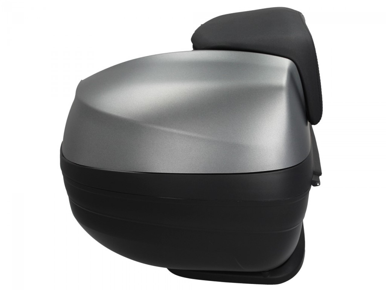 Caja superior de liberación rápida. Espacio para un casco modular. Carcasa superior pintada del mismo color que el vehículo. Se completa con el cómodorespaldo del pasajero