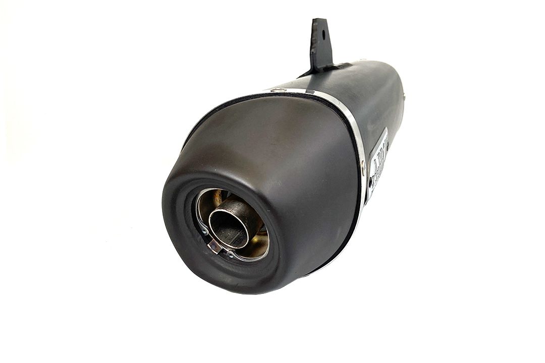 Silenciador trasero ARROW DARK URBAN con carcasa de aluminio negro y tapa final de acero inoxidable negro, con inserto dB-Killer, homologado para carretera.