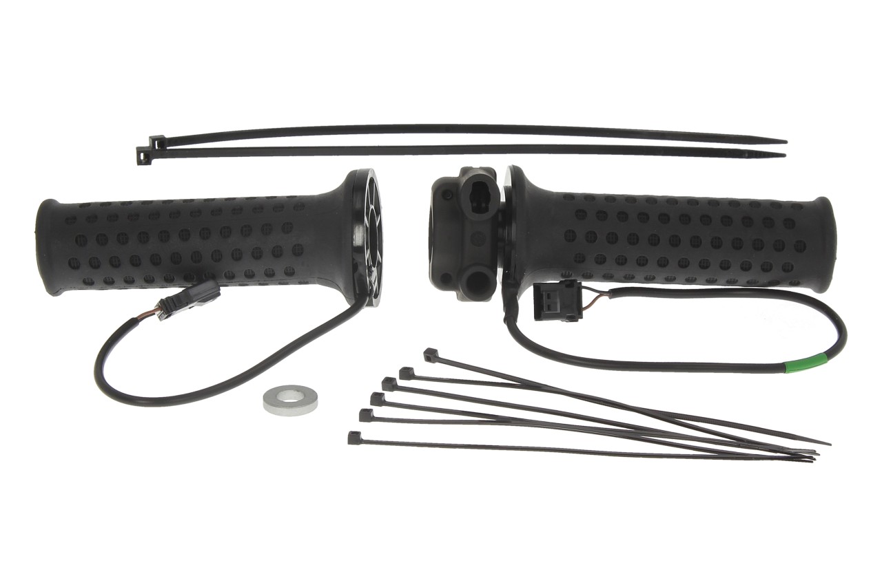Aumenta el confort de conducción en la estación fría. La temperatura se puede ajustar en cuatro niveles diferentes. Para poder utilizar este elemento, el vehículo debe estar equipado con la unidad de control para accesorios calefactados Art. 1D004429 y la Plataforma Multimedia Piaggio Art. 607687M.