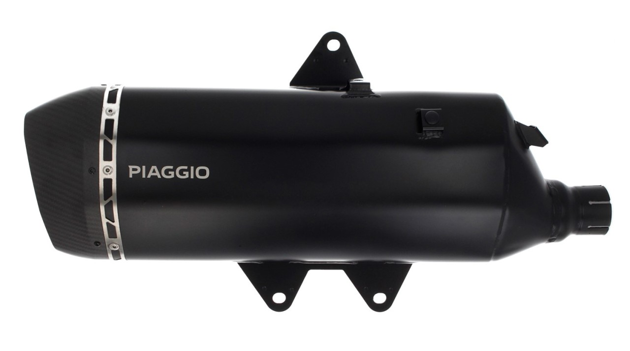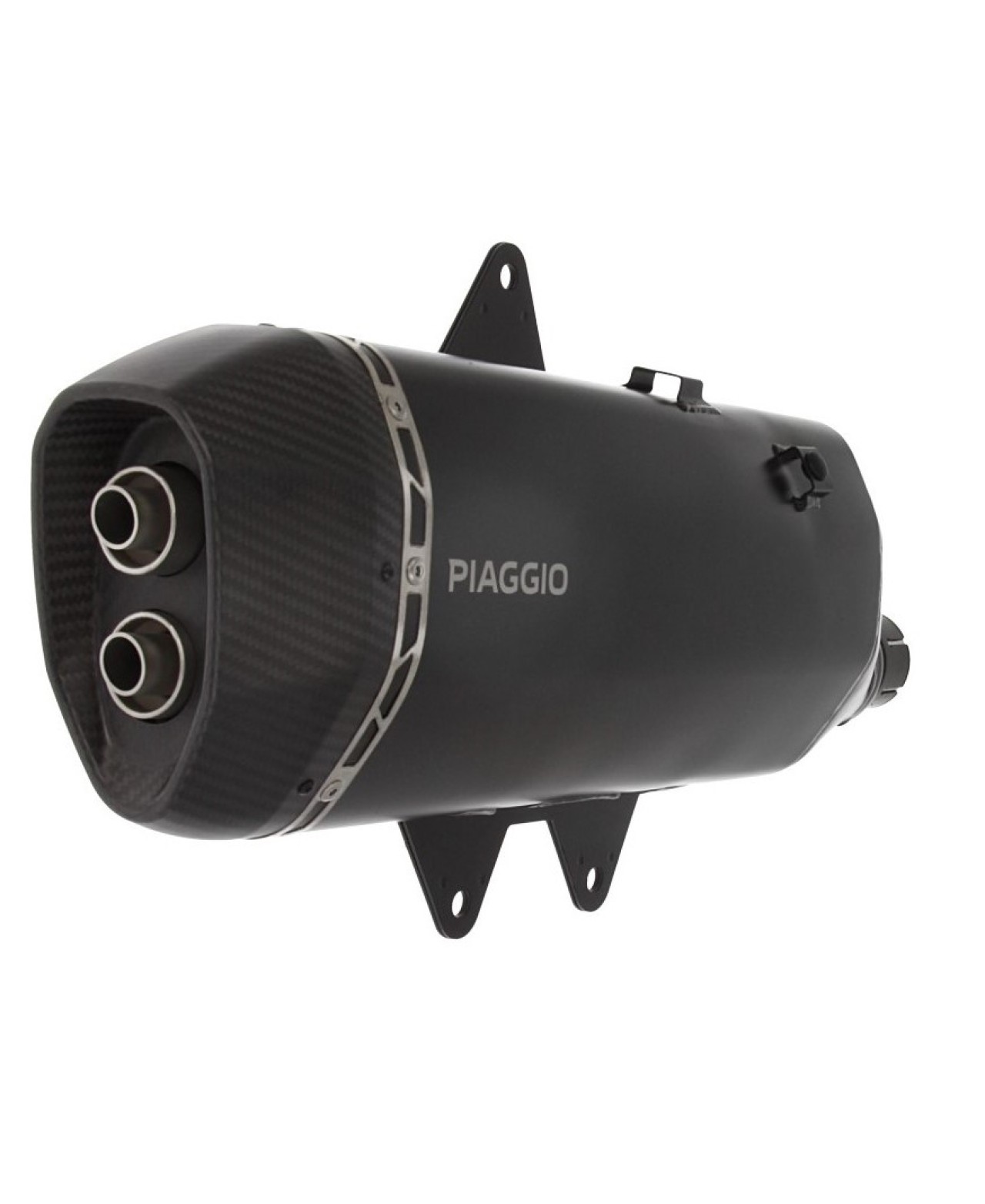 Sistema de escape deportivo y de alta tecnología, especialmente desarrollado para el nuevo MP3. Fabricado en fibra de carbono y acero inoxidable, este escape deportivo es más ligero que el escape original. Producto probado y aprobado por el centro de I+D del Grupo Piaggio, totalmente homologado para el mercado europeo según la norma de emisiones Euro 5. La compra de este accesorio original no afecta a la garantía del vehículo.