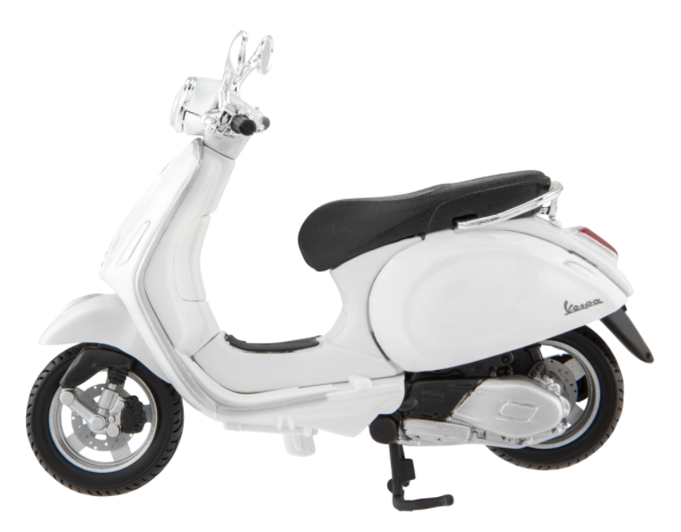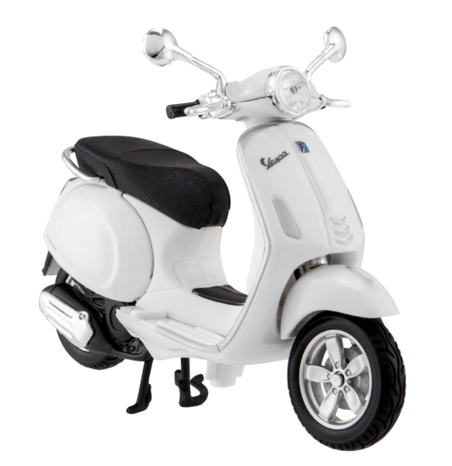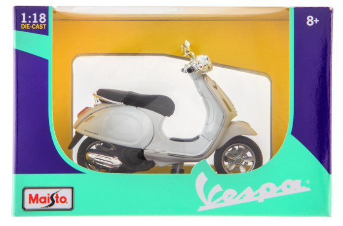 Diseño intemporal, alto valor de reconocimiento, estas dos características de los scooters Vespa se han inmortalizadode forma muy exitosa en esta serie de modelos de Maisto .Los exclusivos vehículos de dos ruedas en miniatura cuentan con la dirección típica de Vespa, finos detalles del motor y la característica posición de asiento erguida. Y, por supuesto, todo ello empaquetado en una caja con el logotipo original.