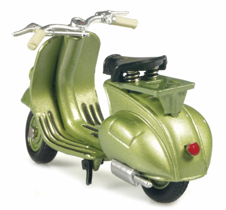 Diseño intemporal, alto valor de reconocimiento, estas dos características de los scooters Vespa se han inmortalizado de forma muy exitosa en esta serie de modelos de NewRay. Los exclusivos vehículos de dos ruedas en miniatura cuentan con la dirección típica de Vespa, finos detalles del motor y la característica posición de asiento erguida. Y, por supuesto, todo ello empaquetado en una caja con el logotipo original.