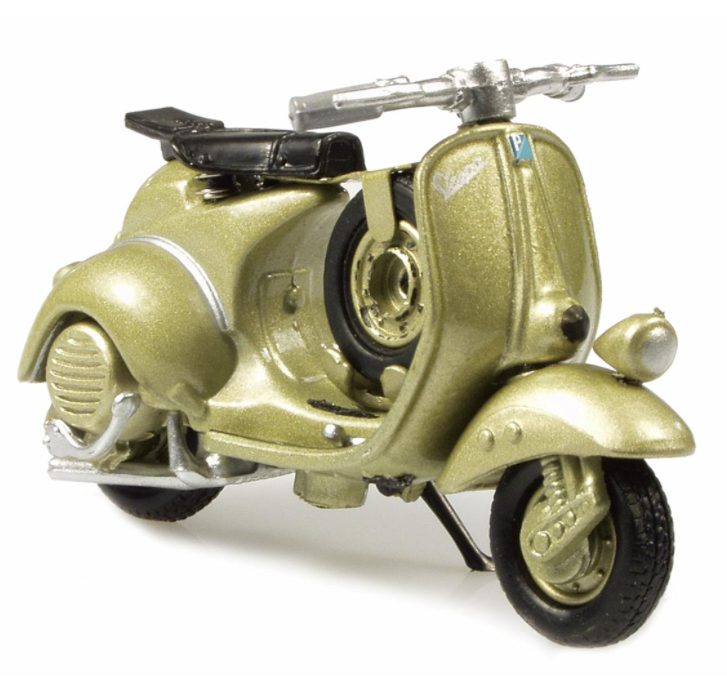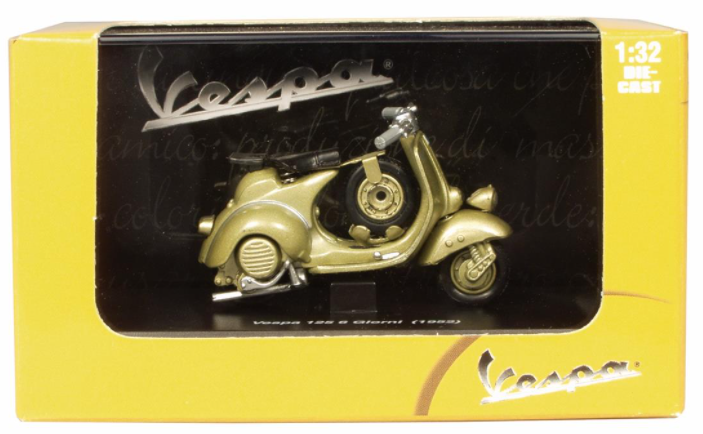 Diseño intemporal, alto valor de reconocimiento, estas dos características de los scooters Vespa se han inmortalizado de forma muy exitosa en esta serie de modelos de NewRay. Los exclusivos vehículos de dos ruedas en miniatura se caracterizan por la dirección típica de Vespa, los finos detalles del motor y la característica posición vertical del asiento. Y, por supuesto, todo ello empaquetado en una caja con el logotipo original.