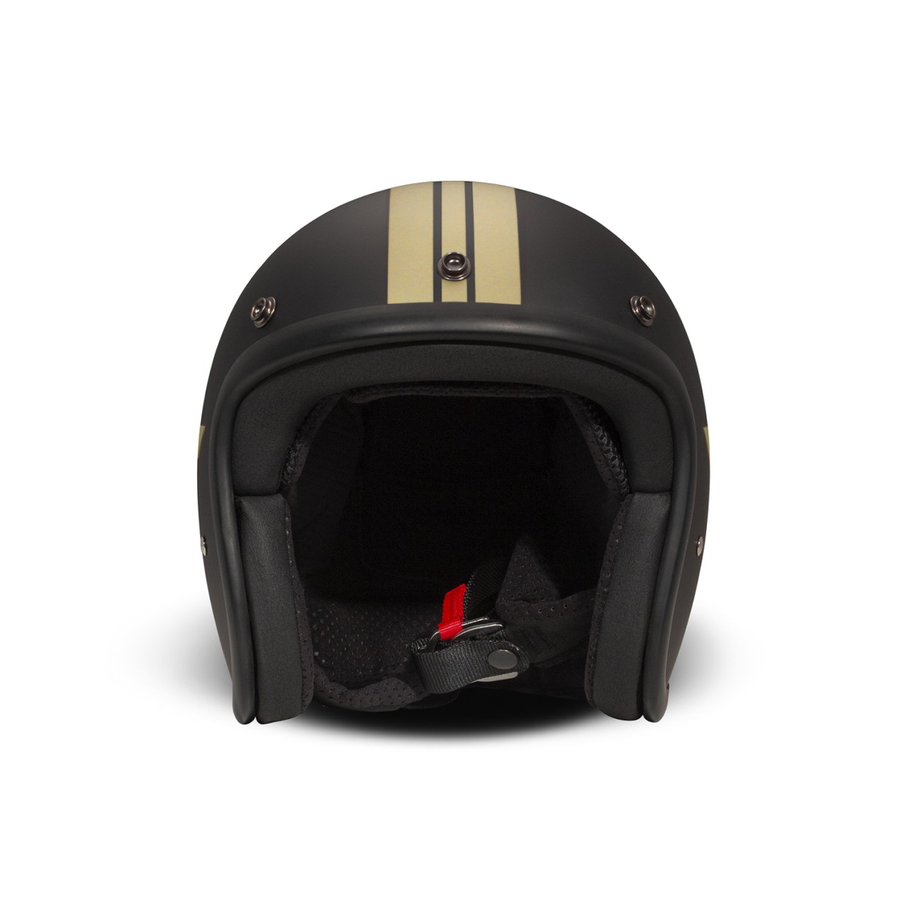 Casco DMD jet Retro, negro, mate, Star Gold, fibra de vidrio, ECE 22.06