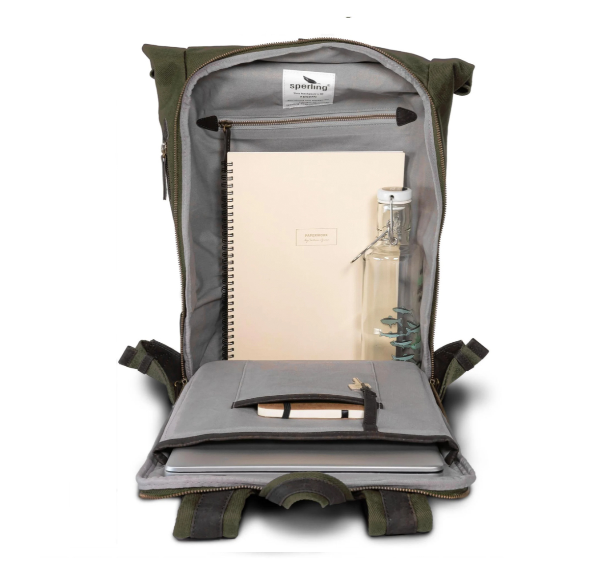La nueva mochila Sperling para conductores de Vespa y scooter combina funcionalidad y sostenibilidad con su diseño robusto e hidrófugo. Fabricada con sarga de algodón orgánico y corcho natural vegano, ofrece protección y estilo en cualquier clima y situación. Lamochila tiene acolchado de alta calidad en la espalda, las correas de los hombros y la parte inferior para garantizar la máxima comodidad. Un compartimento acolchado para el portátil ofrece espacio seguro para dispositivos de hasta 15,6" o 26,5 cm de ancho.