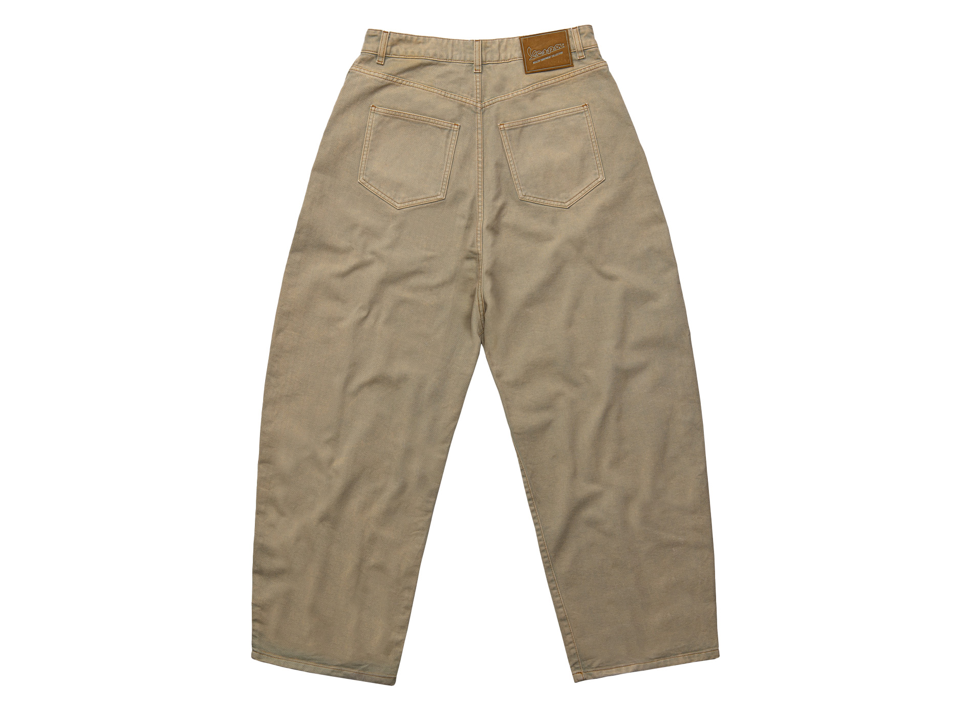 Tejido vaquero oversize y unisex, de cintura baja y pernera ancha. Origen y Nómada son sobreteñidos que dan a la prenda una transición de color gradual. Negro es un lavado vintage que crea tonos claros en la prenda. La etiqueta de cuero repujado con el logotipo en color de contraste en la parte trasera es especialmente llamativa.