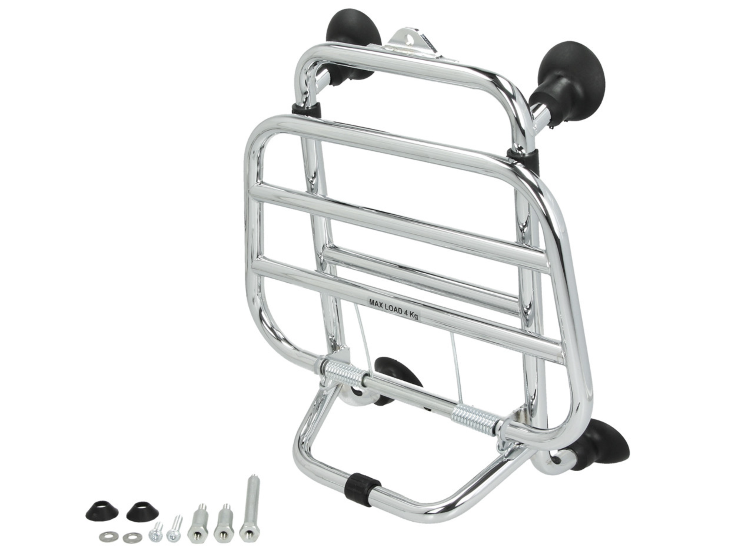 El portaequipajes delantero plegable cromado para Vespa GTS es un producto de alta calidad especialmente desarrollado para la Vespa GTS. El portaequipajes se fija fácilmente a la parte delantera de la Vespa y ofrece espacio suficiente para una bolsa o una mochila. Gracias al mecanismo de plegado, el portaequipajes se puede plegar rápida y fácilmente cuando sea necesario.