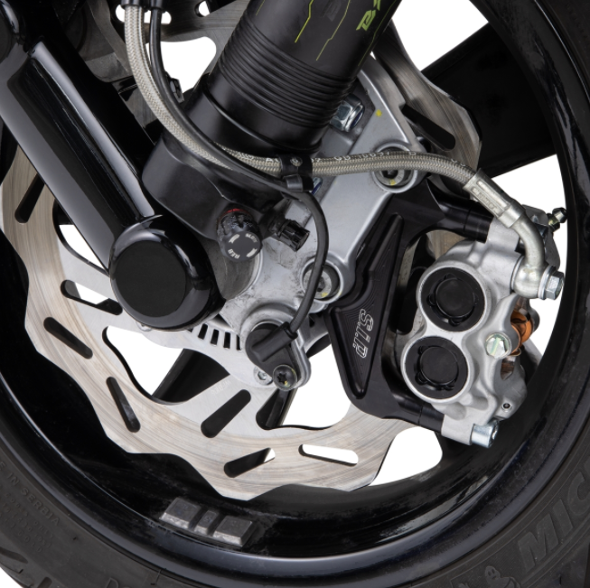 Para poder accionar discos de freno más grandes, se requieren adaptadores y tornillos adecuados (p. ej., artículo n.° MVBRKA02 / MVBRKA03). Purgue los frenos y no olvide líquido de frenos nuevo.