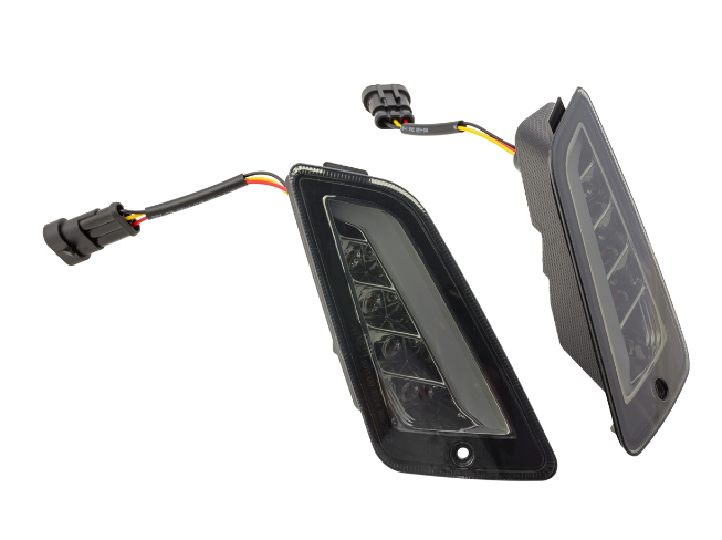 Kits de indicadores LED SIP con luces de posición LED integradas y Aprobación E, con lentes indicadoras tintadas o transparentes. Las luces LED hacen que sea mucho más fácil ser visto en el tráfico, incluso durante el día. Las luces de posición emiten luz blanca en la parte delantera y luz roja en la parte trasera, la función de señal de giro permanece naranja. Si el proceso de intermitencia se realiza en el vehículo, los intermitentes o las luces de posición se encienden alternativamente en el lado respectivo. Alta calidad y ajuste óptimo. Los kits de intermitentes se pueden instalar plug & play sin más modificaciones. Debido a las resistencias soldadas, no se requiere un relé LED especial.