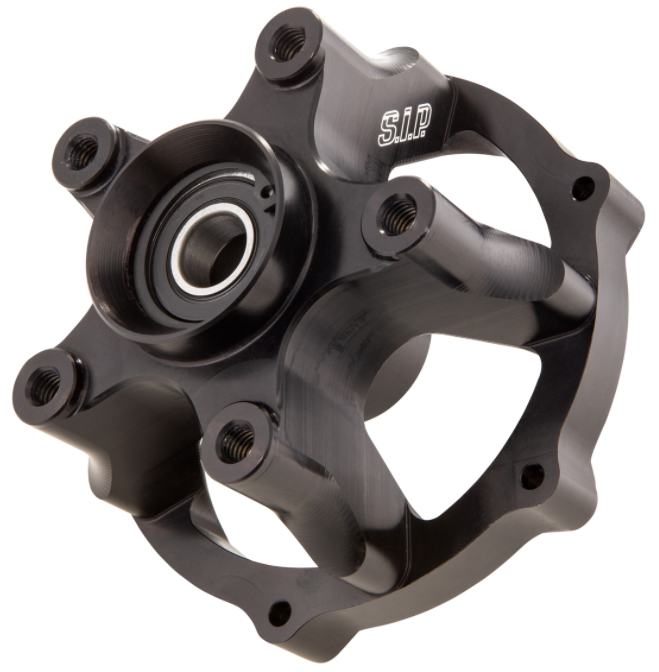 Se utiliza una aleación de aluminio de alta resistencia como base para el cubo de rueda fresado por CNC de SIP. Debido al procesamiento CNC y el equilibrio fino del cubo de la rueda, así como a los cojinetes de funcionamiento extremadamente suave, obtiene una concentricidad notablemente más agradable en comparación con el componente original. El cubo de la rueda es adecuado para columnas de dirección PIAGGIO (por ejemplo, MP3/GTS, etc.) junto con un disco de freno con soporte de 6 orificios y un diámetro de círculo de pernos de 105 mm. Para los modelos hasta 2013, se requiere la rueda dentada para accionar el tornillo sinfín del velocímetro (n.º de artículo de Piaggio PI267818), los modelos a partir de 2014 tienen un sensor de velocidad integrado en el arnés de cableado como estándar, la rueda dentada ya no es necesaria aquí.
