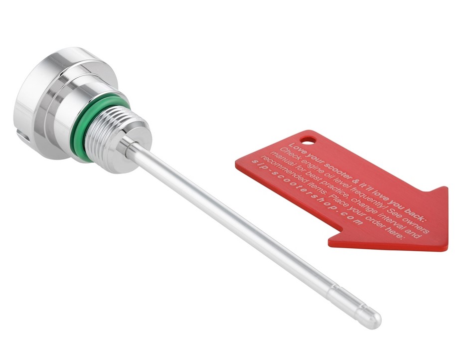 El tapón/varilla de llenado de aceite SIP PORDOI para el aceite de motor está fabricado de aluminio de alta calidad fresado CNC. Debido al diseño simple, los tapones de llenado de aceite se ven hermosos en todos los vehículos y se adaptan bien a la imagen general de la Vespa. La escala de la varilla está alineada con los tapones de llenado originales, el anillo de sellado correspondiente ya está colocado Los tapones de llenado estándar a menudo se roban de los vehículos estacionados. Para dificultar el trabajo de personas no autorizadas, hemos pensado en un pequeño plus de seguridad y suministramos una herramienta de montaje especial con los tornillos de relleno que también se puede utilizar como llavero.