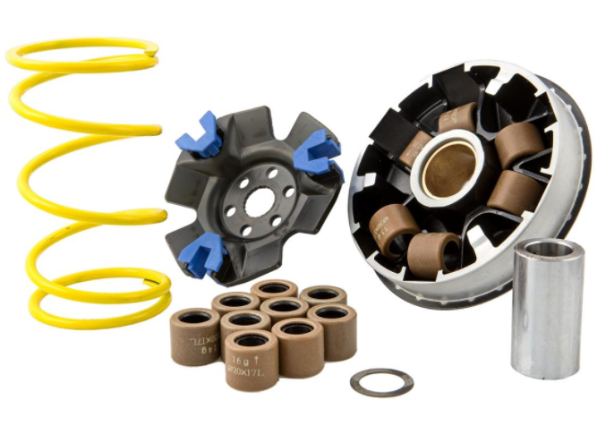 Instrucciones de instalación: ZELIONI Vario solo se puede instalar con el Vario incluido rodillos (sin ruedas Dr. Polea, etc./deslizadores). Se puede omitir el rodillo tensor entre el variador y el embrague. Se recomienda la siguiente configuración del conjunto vario: