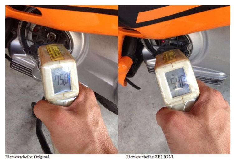 polea de ZELIONI. El ángulo de flanco difiere significativamente del original y garantiza una mejor aceleración y una conducción optimizada para el rendimiento con una mejor transmisión de potencia. Las aspas del ventilador modificadas reducen la temperatura en todo el accionamiento (Vario y embrague). Esto reduce el desgaste de la correa trapezoidal.
