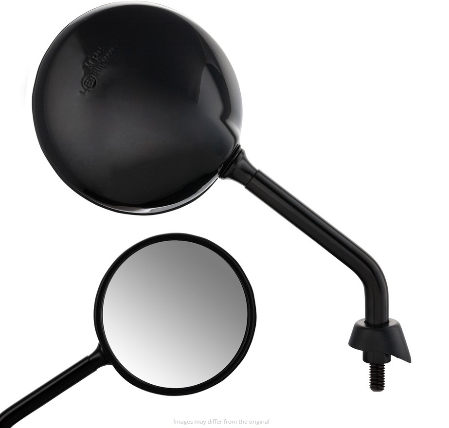 Los retrovisores Shorty conservan la forma original de los retrovisores Vespa, pero tienen un brazo mucho más corto. Con aproximadamente 5-6 cm menos de longitud de palanca, encaja perfectamente en la imagen general de la Vespa. El cabezal del espejo se puede ajustar mediante la rótula, el campo de visión no se ve afectado a pesar de la palanca más corta. El espejo tiene un número E y se puede conducir en la carretera sin ningún problema. La entrega incluye tapones de goma y contratuercas.
