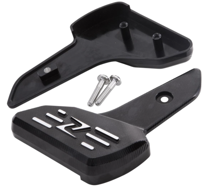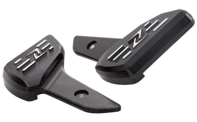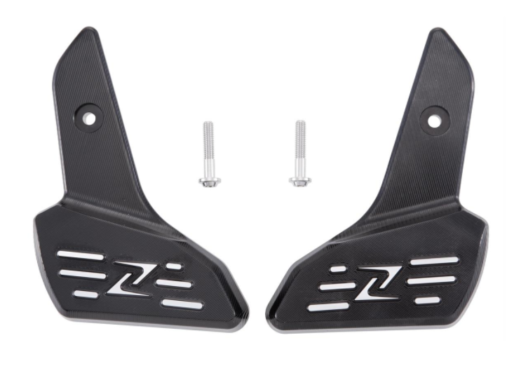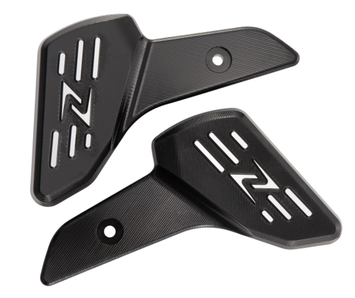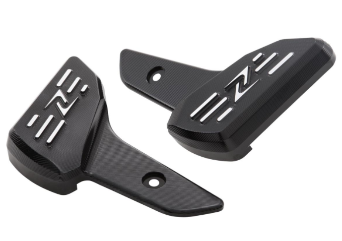 Reposapiés de aluminio de alta resistencia, fresado CNC, anodizado, con logo ZELIONI . Montado en lugar del reposapiés original. Queda la junta de plegado.