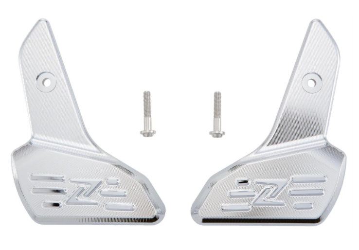 Reposapiés de aluminio de alta resistencia, fresado CNC, anodizado, con logo ZELIONI . Montado en lugar del reposapiés original. Queda la junta de plegado.