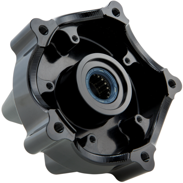 Una aleación de aluminio de alta resistencia se utiliza como base para el cubo de rueda fresado CNC por ZELIONI . Debido al procesamiento CNC y el equilibrio fino del cubo de la rueda, así como a los cojinetes de funcionamiento extremadamente suave, se obtiene una concentricidad notablemente más agradable en comparación con el componente original. El cubo de rueda es adecuado para columnas de dirección PIAGGIO junto con un disco de freno con montaje de 6 orificios y un diámetro de círculo de pernos de 105 mm. Para los modelos hasta 2013, se requiere la rueda dentada para accionar el tornillo sinfín del velocímetro (n.º de artículo de Piaggio PI267818), los modelos a partir de 2014 tienen un sensor de velocidad integrado en el arnés de cableado como estándar, la rueda dentada ya no es necesaria aquí.