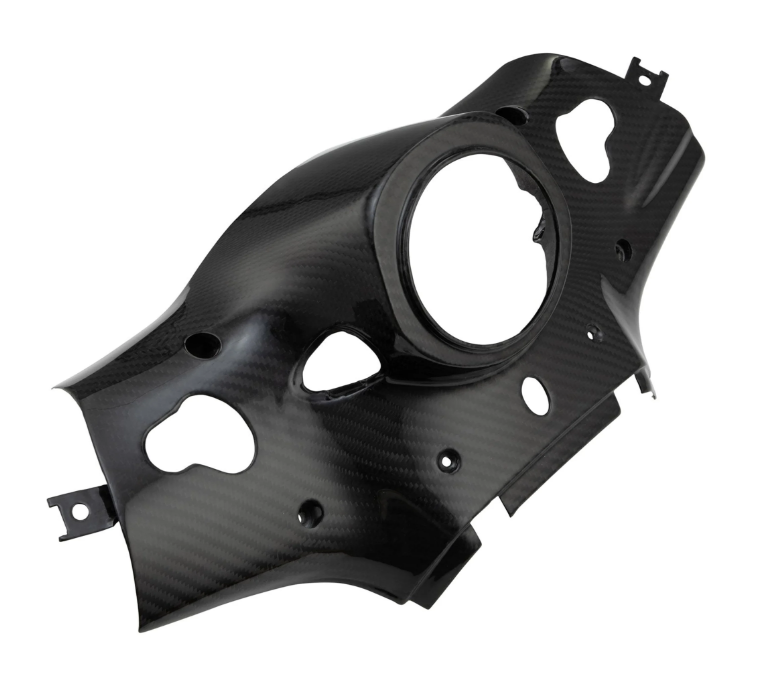 Las piezas de carbono no solo tienen demanda por sus propiedades robustas y su construcción liviana, con accesorios hechos de carbono, cada aficionado a los vehículos de dos ruedas sugiere inmediatamente una conexión con el automovilismo. Los atributos y la apariencia que trae consigo el carbono crean una apariencia de carrera genial. Aunque el esfuerzo para cambiar la cubierta inferior del manillar es bastante grande, el resultado vale la pena. ¡La cubierta del manillar de ajuste personalizado hecha de carbono es simplemente demasiado hermosa como para no tenerla! Las piezas originales sirvieron como base para los moldes, por lo que podemos garantizar un ajuste perfecto. Las propias piezas de carbono se fabrican y laminan de forma elaborada utilizando moldes especiales.