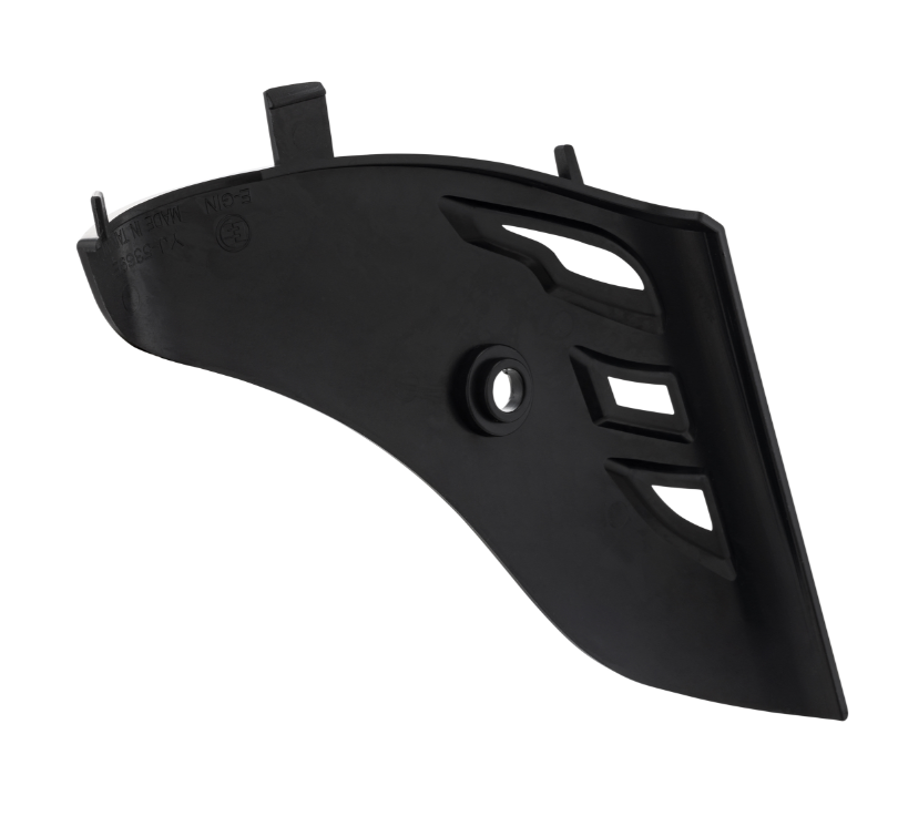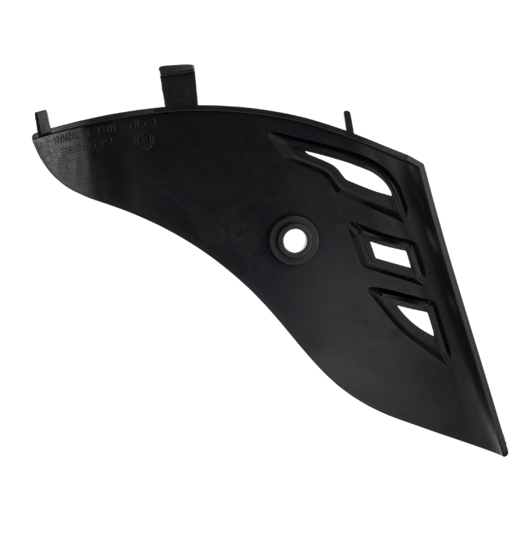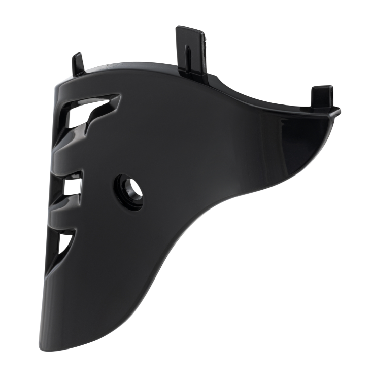 El carenado de la horquilla, con sus deportivas ranuras, está hecho de plástico de alta calidad y luego pintado del color correspondiente, no como el original, que está hecho de plástico de colores sin importancia. Sustituir el carenado de la horquilla es relativamente sencillo, pero requiere un poco de paciencia, ya que la fijación al interior del guardabarros es un poco incómoda.