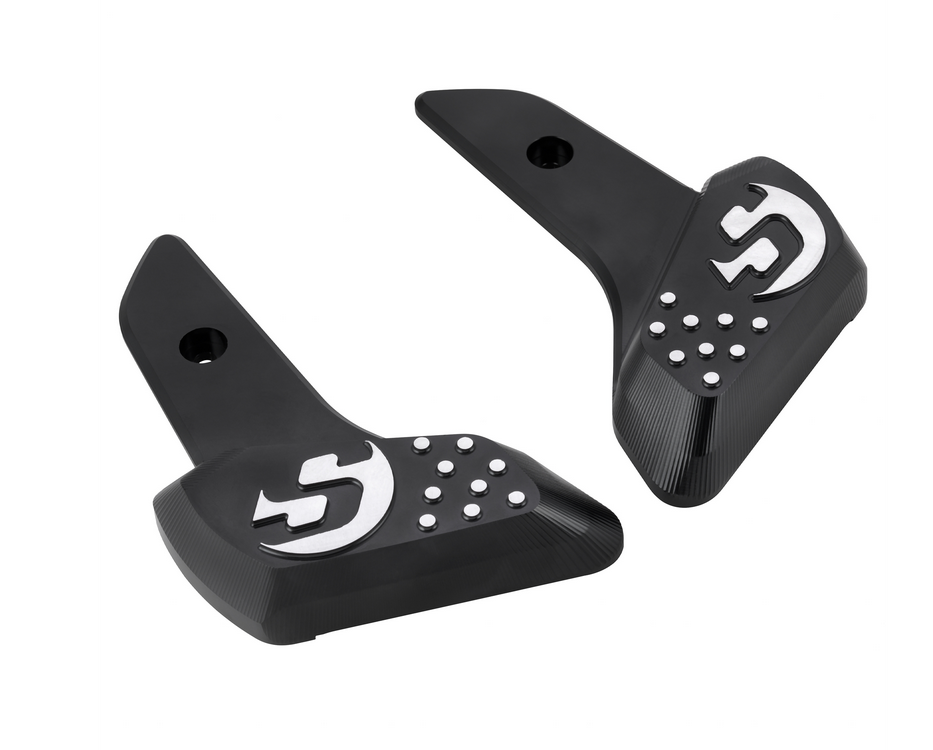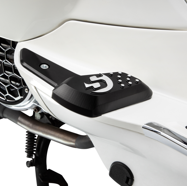 Los reposapiés SIP proporcionan más comodidad al pasajero. La conducción puede resultar incómoda rápidamente, sobre todo para un pasajero con las piernas algo más cortas. Los reposapiés se atornillan de forma firme y estable en el espacio para los pies y ofrecen más comodidad y una sujeción óptima. Los reposapiés están fabricados mediante fresado CNC en aluminio de alta calidad y anodizados en varios colores. Para instalarlos, se retiran los reposapiés del pasajero estándar y se fijan los nuevos reposapiés SIP con los tornillos incluidos: más fácil imposible.