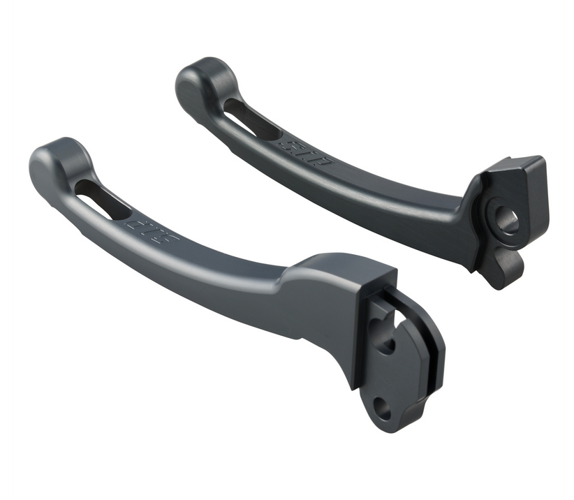 Las manetasdeportivas fabricadas con CNC son ideales para los pilotos deportivos y ambiciosos, y no sólo por su aspecto.La longitud de las manetas es tal que tienen la misma anchura en ambos lados, incluso cuando se utiliza un cilindro de freno hidráulico. Las manetas tienen un punto de rotura predeterminado en el extremo. Esto es para evitar que se rompan en caso de caída. Esto significa que el scooter puede seguir funcionando después de un accidente leve. Las palancas de freno o embrague de colores a juego están disponibles por separado. Para los modelos con freno de disco totalmente hidráulico, comprueba el cilindro principal de freno antes de hacer el pedido (HENGTONG o GRIMECA). Se suministra por piezas.
