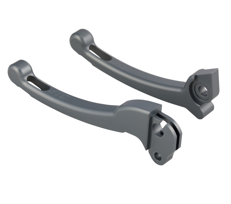 Las manetasdeportivas fabricadas con CNC son ideales para los pilotos deportivos y ambiciosos, y no sólo por su aspecto.La longitud de las manetas es tal que tienen la misma anchura en ambos lados, incluso cuando se utiliza un cilindro de freno hidráulico. Las manetas tienen un punto de rotura predeterminado en el extremo. Esto es para evitar que se rompan en caso de caída. Esto significa que el scooter puede seguir funcionando después de un accidente leve. Las palancas de freno o embrague de colores a juego están disponibles por separado. Para los modelos con freno de disco totalmente hidráulico, comprueba el cilindro principal de freno antes de hacer el pedido (HENGTONG o GRIMECA). Se suministra por piezas.