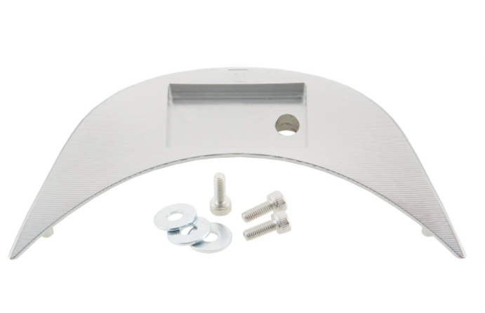 Cubierta del velocímetro para el manillar fabricada en aluminio de alta resistencia, fresado CNC, anodizado, con logo ZELIONI . Pegado al cristal del velocímetro con cinta transfer 3M. Se sujeta de forma segura y a prueba de bombas.